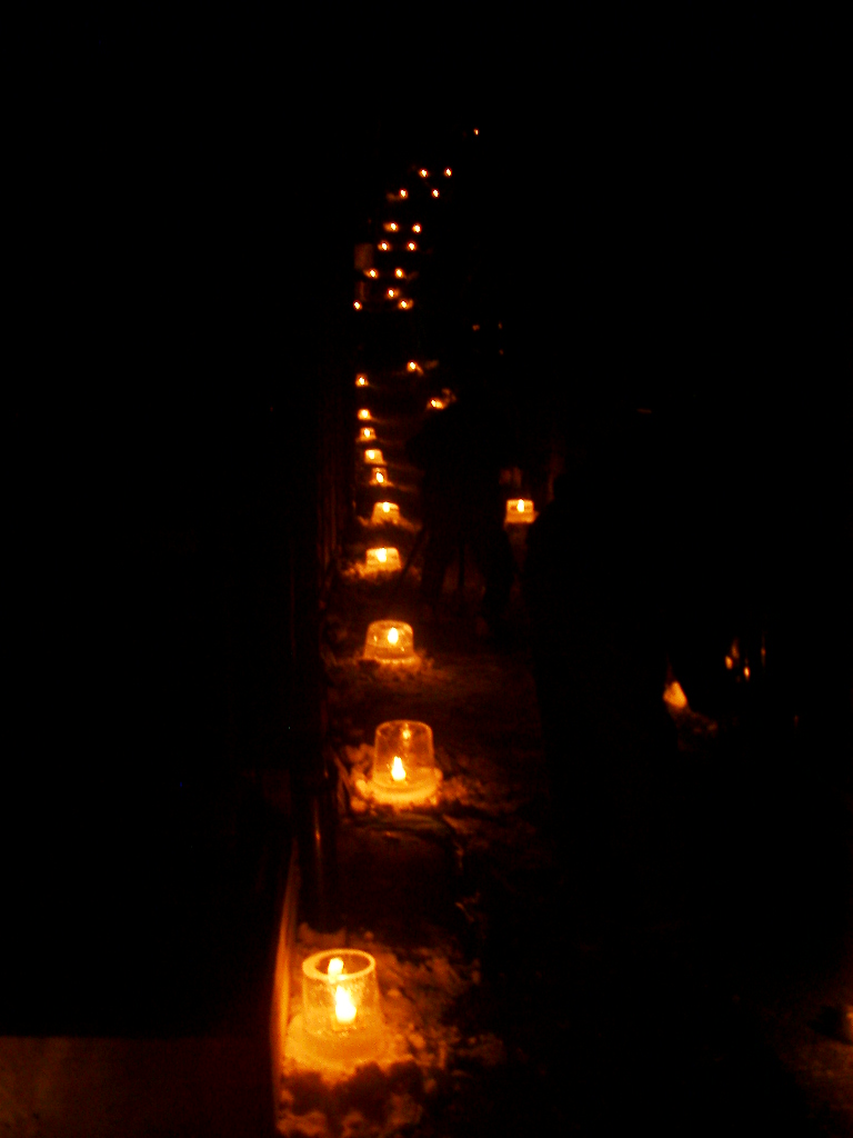 道の両脇に 並んでいる アイスキャンドルを見ながら 歩くのも 中々オツなものでございます(笑)