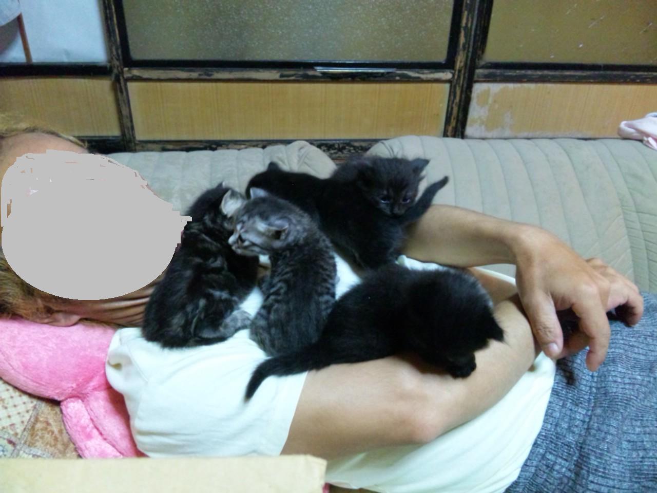 丸一ヶ月を過ぎたばかりの 5にゃん達 早めに里親募集をかけ そろそろ 良いだろうと 応募してきた方に 順番に 面接を始めました。